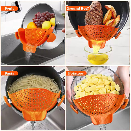Universal Silicone Clip-On Pot Strainer - Anti-Spill Food Grade Colander